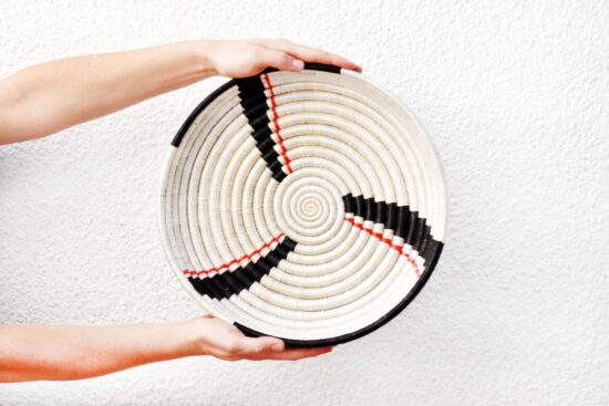 Although these Binga baskets make striking wall art alone or when hung together in a group, these shallow woven baskets can also be used for fruit and bread, or for displaying jewellery, soaps or hand towels. Traditionally, these baskets were (and are still) used for winnowing grains.