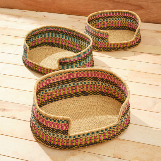 Colourful Woven Dog Bed -Teal & Pink