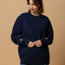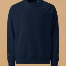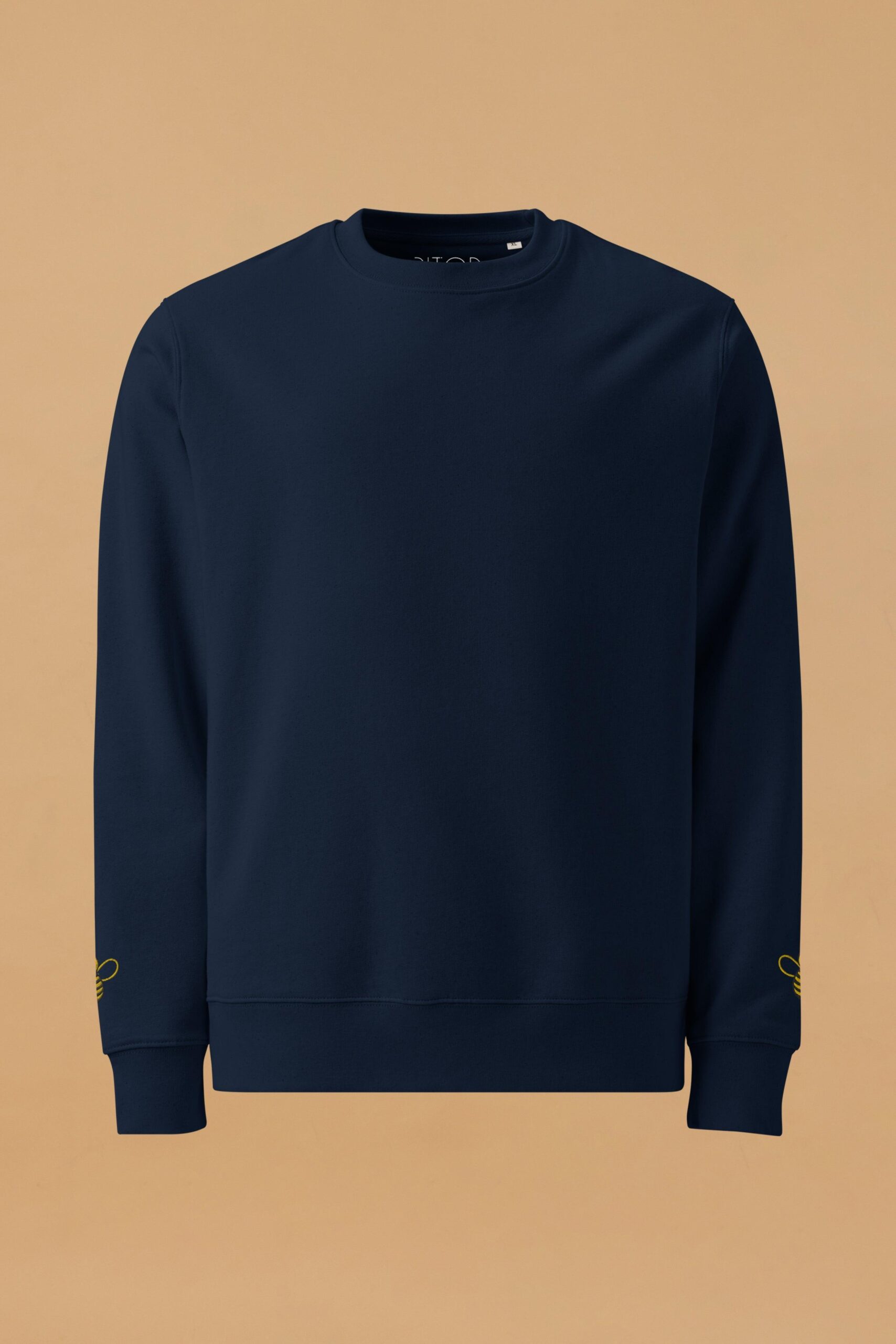 Introducing the Bee Sweatshirt—where simplicity meets sustainability. This unisex eco-friendly sweatshirt combines classic style with modern comfort, making it a versatile addition to any wardrobe. Crafted from 100% organic ring-spun combed cotton, the sweatshirt is not only durable but also exceptionally soft, providing a luxurious feel against your skin. The design is minimalistic yet eye-catching, featuring a single, delicately embroidered yellow bee on each sleeve. These small but striking details add a touch of playfulness and individuality to the otherwise clean and crisp look of the sweatshirt. With a fabric weight of 350 g/m² (10.3 oz./yd.²), this navy sweatshirt offers warmth without compromising on breathability, making it perfect for layering or wearing on its own. The Bee Sweatshirt is tailored for a regular fit, with set-in sleeves and 1×1 ribbing at the neck collar, sleeve hems, and bottom hem. The double-needle topstitching at the neck collar, sleeves, and bottom hems adds durability and a refined finish, while the inside herringbone back neck tape and self-fabric half-moon at the back neck ensure comfort and longevity. Whether you’re dressing up or down, the Bee Sweatshirt offers a chic and comfortable option that stands out for its quality and eco-conscious design. Elevate your everyday look with this charming, sustainably made sweatshirt—perfect for any occasion.