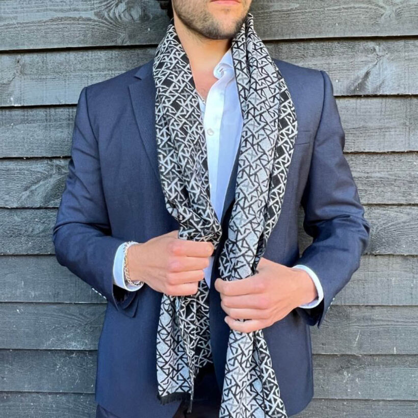 • This Black and White Squares Bamboo Scarf is covered in a monochromatic black and grey square pattern. The perfect subtle addition to your outfit.