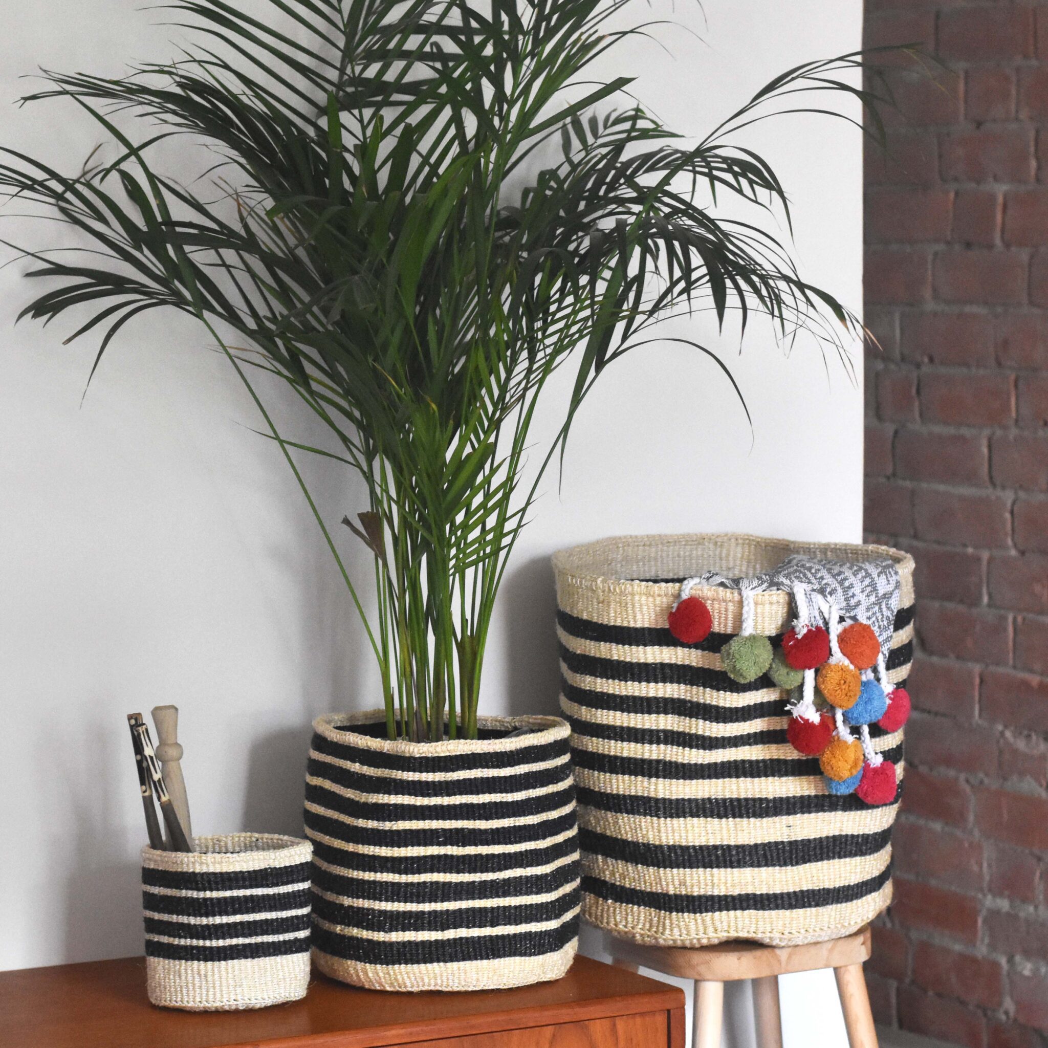 The baskets are hand-woven from sustainably sourced Sisal