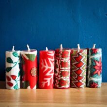 These veneers are then taken by the candle makers and skilfully stretched over a core of pure white wax and hand made into the desired shapes.