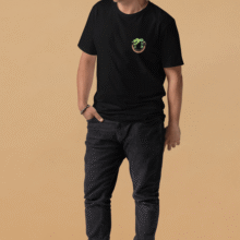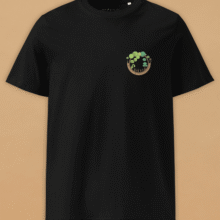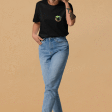 Made from 100% organic ring-spun cotton, this black unisex t-shirt offers a soft, breathable feel and a comfortable medium fit. Designed to last, it features a fabric weight of 5.3 oz./yd² (180 g/m²), set-in sleeves, a 1×1 rib collar, wide double-needle topstitching, and a self-fabric neck tape for extra durability.