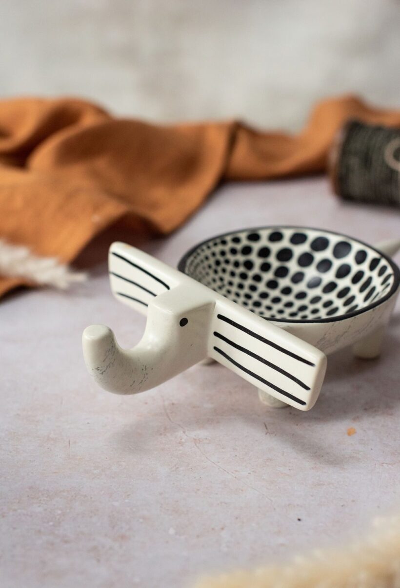 Beautiful and unique soapstone elephant dish which has been ethically and sustainably made by a small group of artisan carvers in Kisii, Kenya – a region which is famous for it’s high quality soapstone.