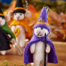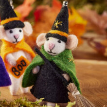 Meet your new favourite Halloween house-guests – three collectable felt mice, each with its own tiny character and costume. Hand-crafted in Nepal using traditional needle-felting techniques, they bring storybook charm to shelves, hooks and seasonal branches.