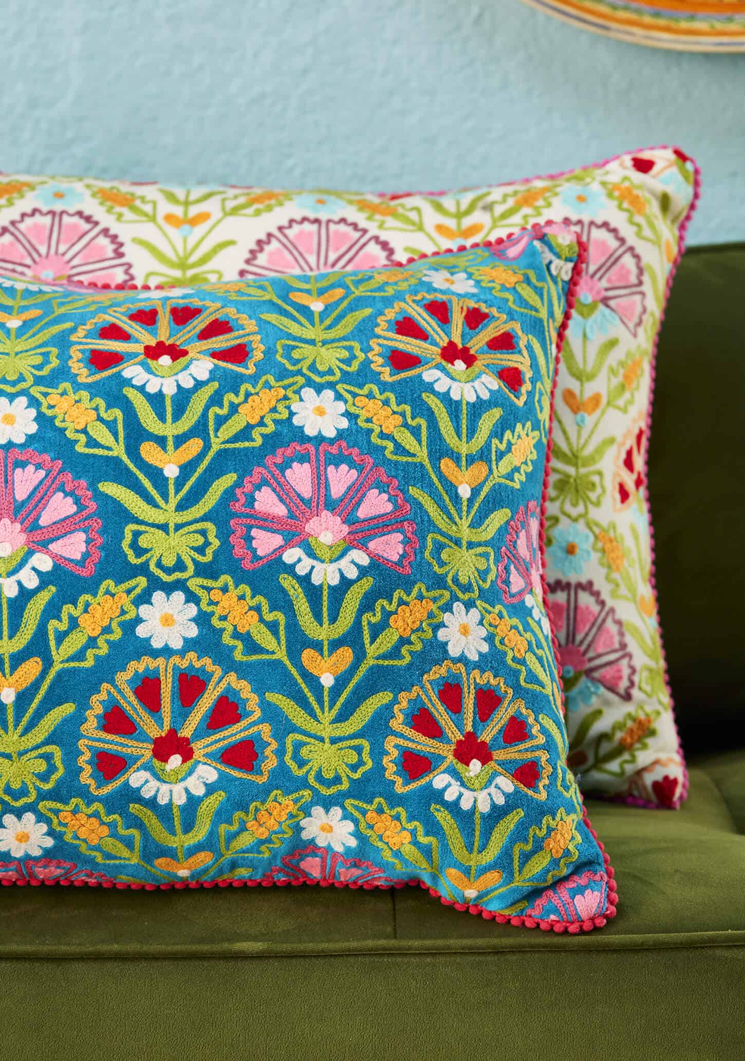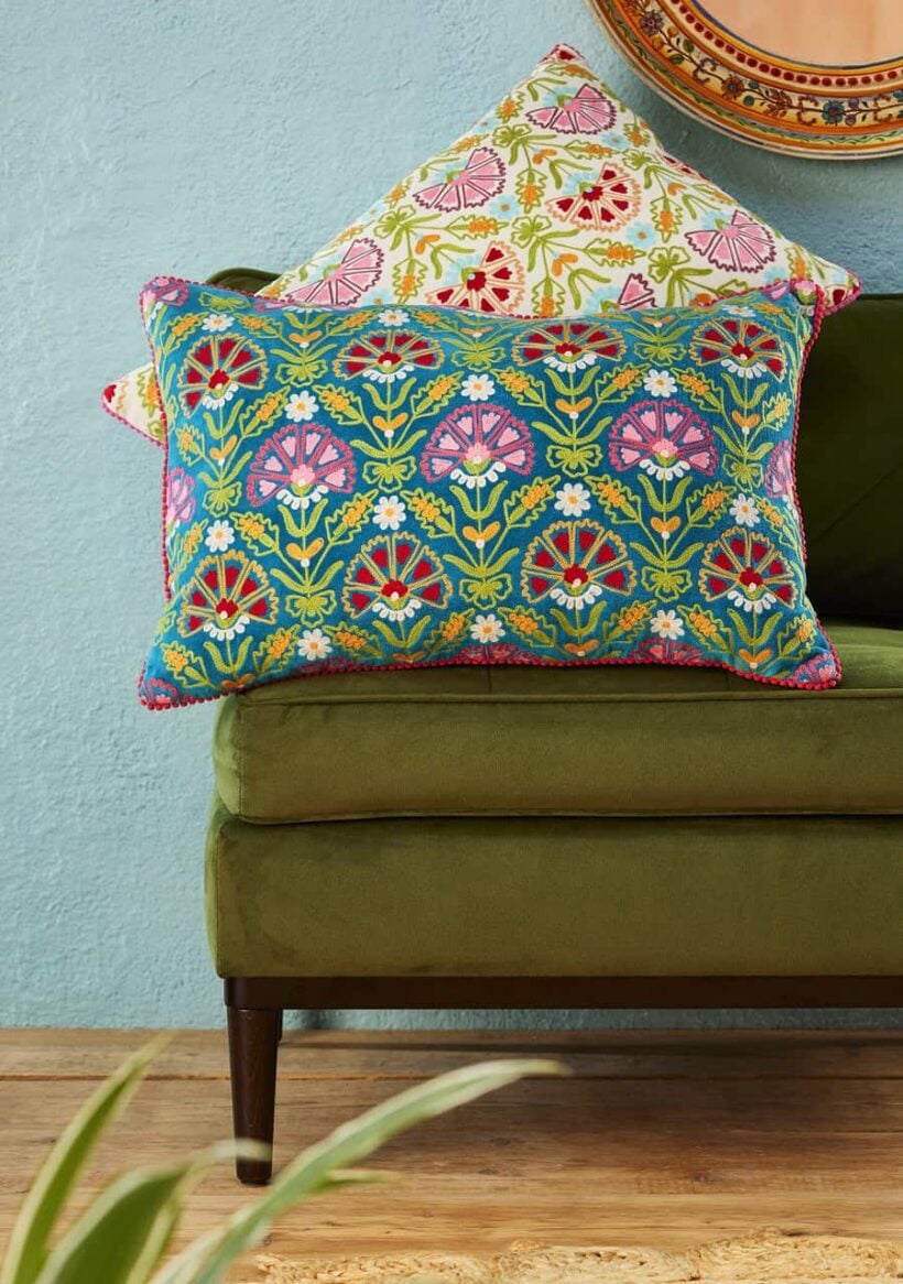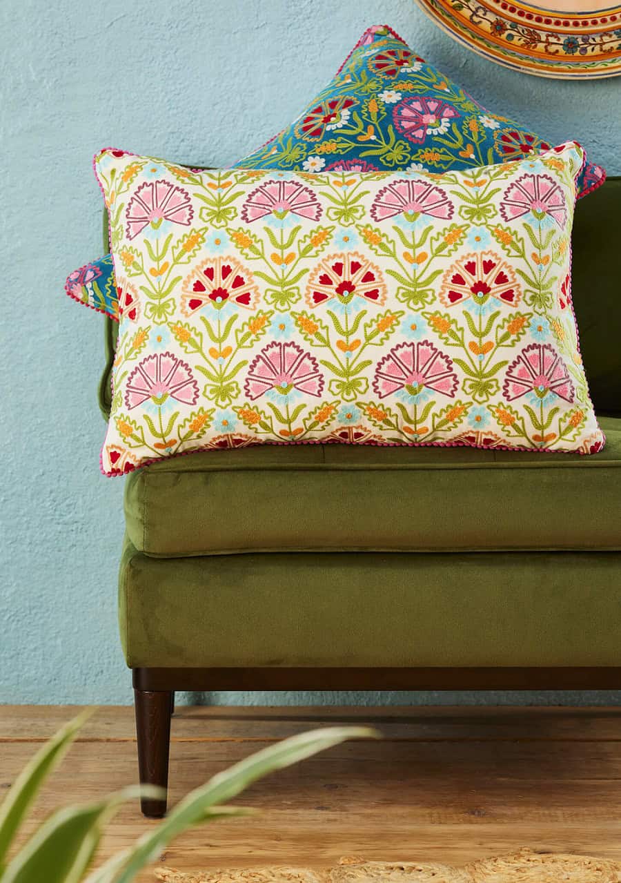 The back of these Floral Velvet Cushion Covers are made from sturdy cotton canvas in a matching tone, ensuring both durability and style. A concealed zip keeps things seamless, making this cushion as practical as it is beautiful. Whether styled on a sofa, bed, or accent chair, the Kaasni cushion adds warmth and depth to any interior.
