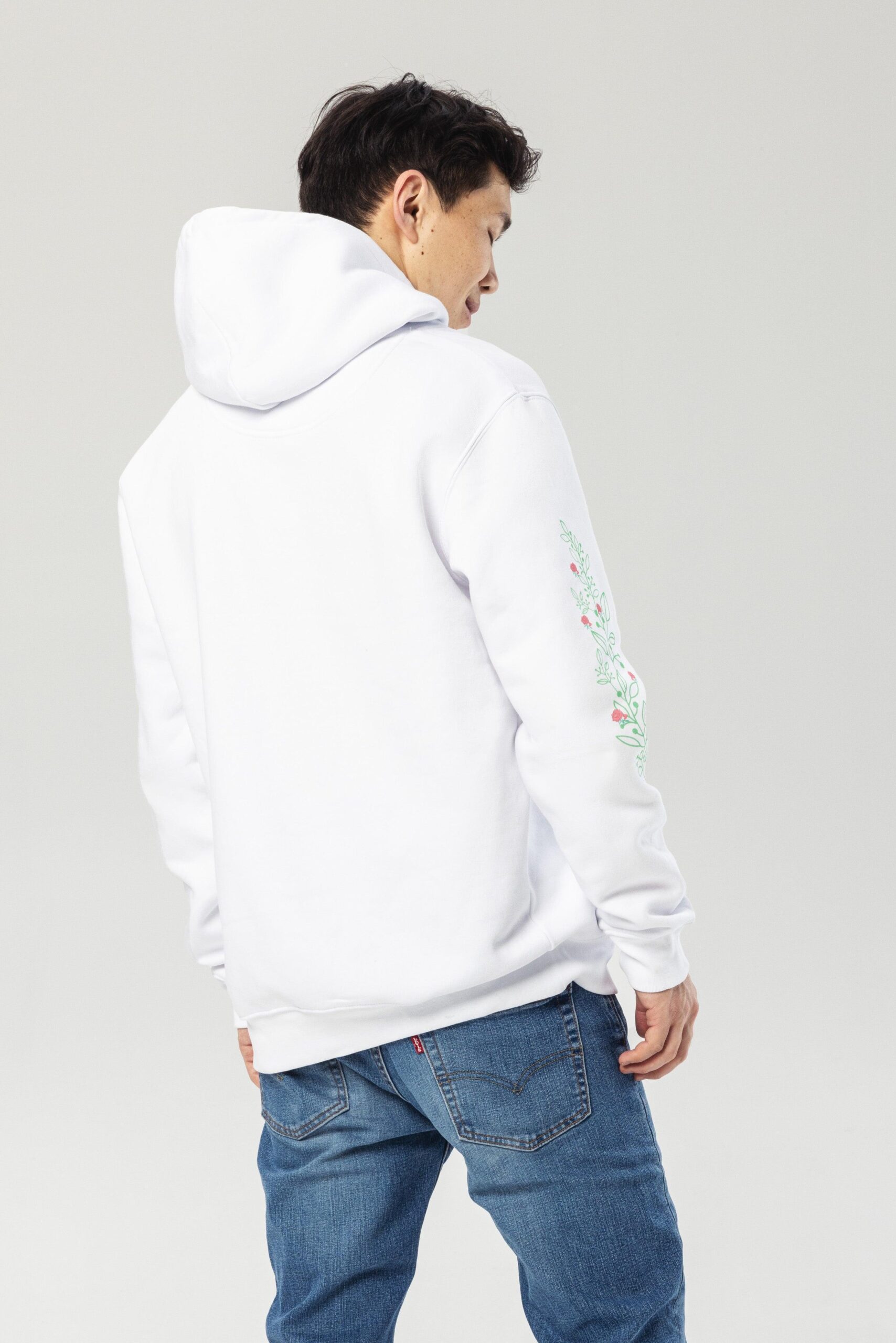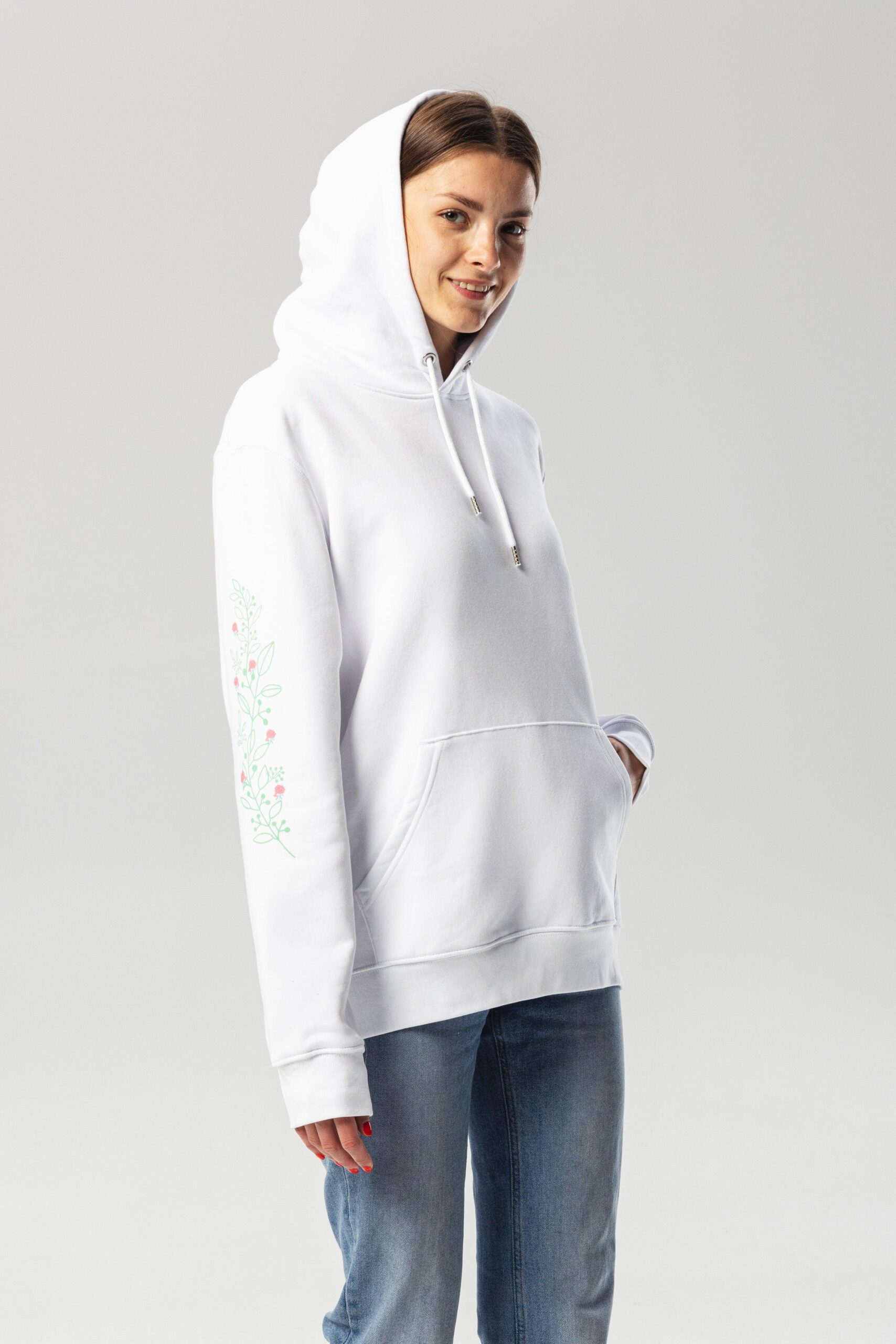 Elevate your streetwear game with our Unisex Essential Eco Hoodie, made from 100% Organic Cotton. This eco-friendly white hoodie is not only comfortable, but it’s also stylish with its clean-cut design and athletic fit. The double-layered hood, set-in sleeves, and front pouch pocket make it the perfect choice for any casual occasion. But what sets it apart is the unique flower tree design on both sleeves, adding a touch of nature to your wardrobe. Stay sustainable and stylish with our Flower Tree Hoodie.