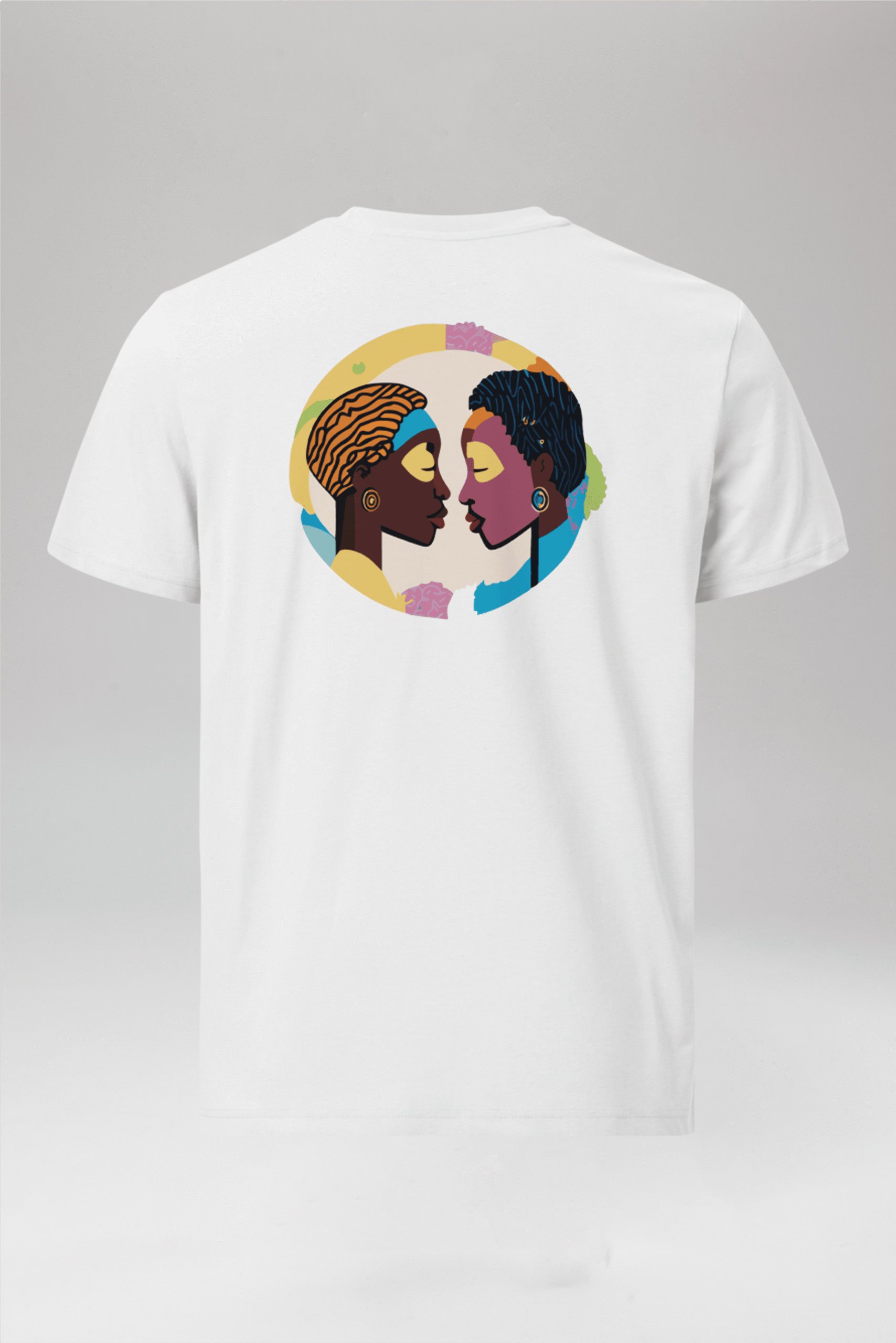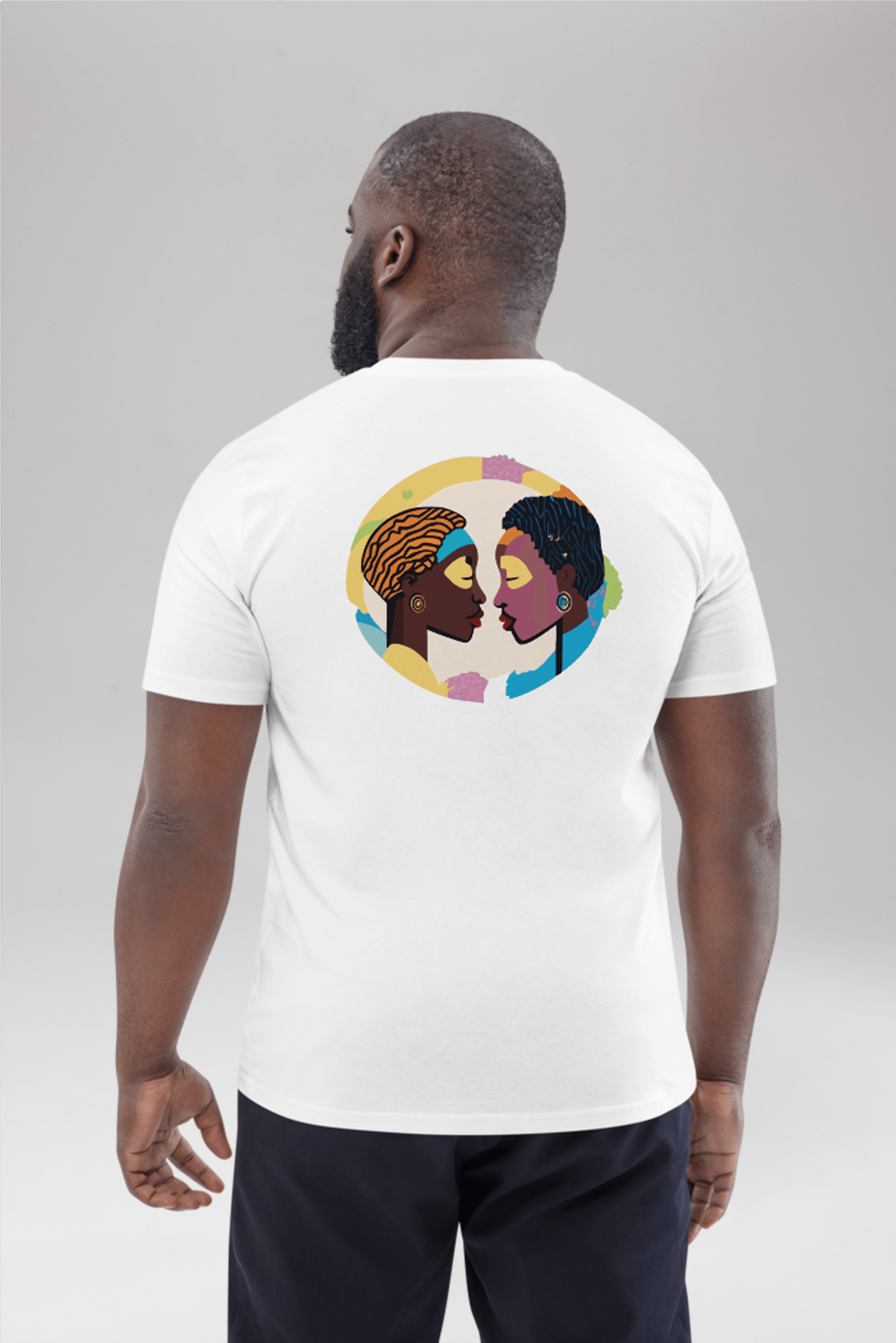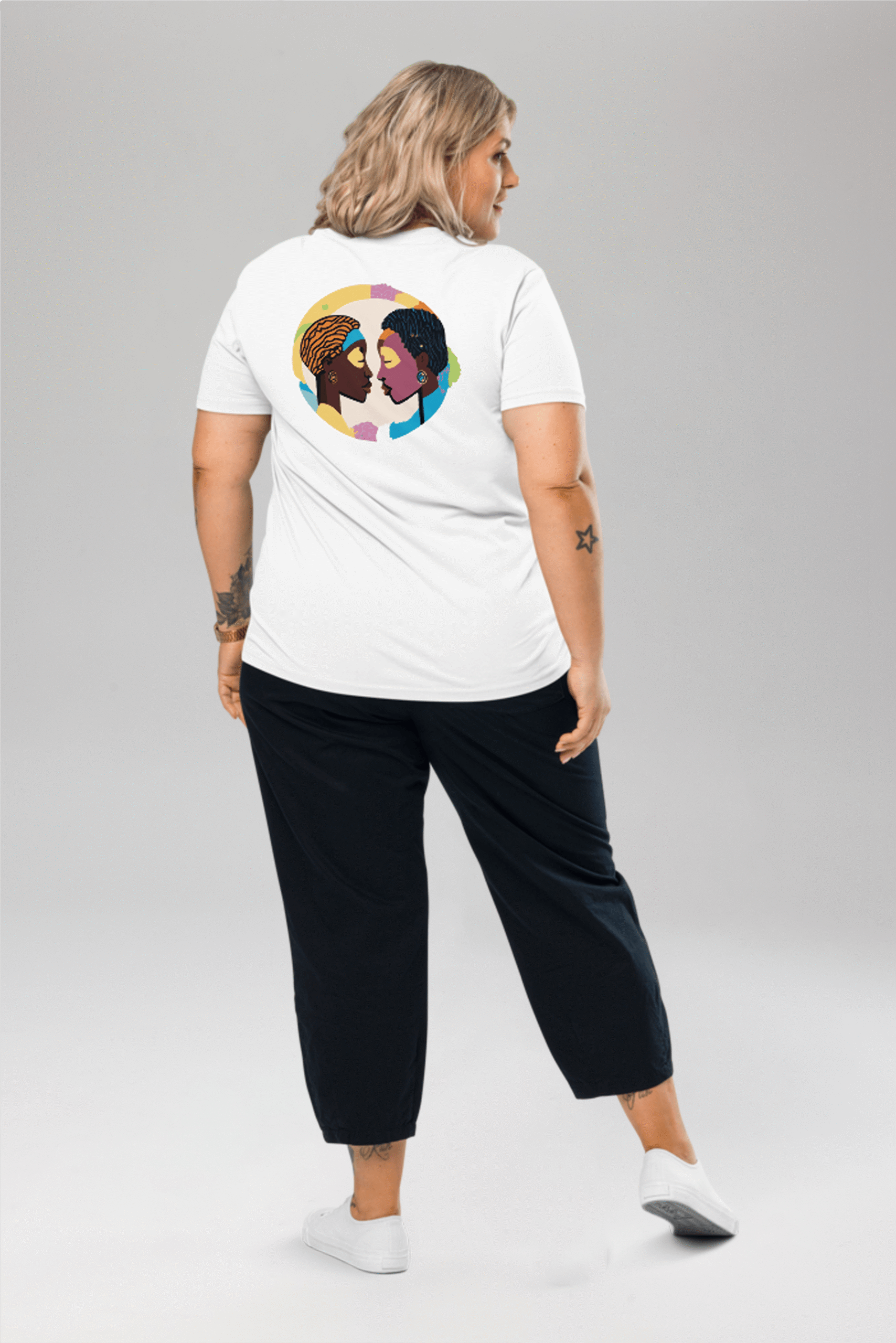 Celebrate love without boundaries with our Genderless Couple T-Shirt—a stylish and inclusive addition to your wardrobe. Crafted from 100% organic ring-spun cotton, this unisex white t-shirt is not just a fashion statement but also a commitment to sustainability. The charming drawing of a genderless couple on the back adds a touch of uniqueness to your ensemble. Embrace the high-quality feel and comfort of this shirt, thanks to its single jersey construction and medium fit. Make a statement for love, equality, and eco-conscious fashion with our Genderless Couple T-Shirt.