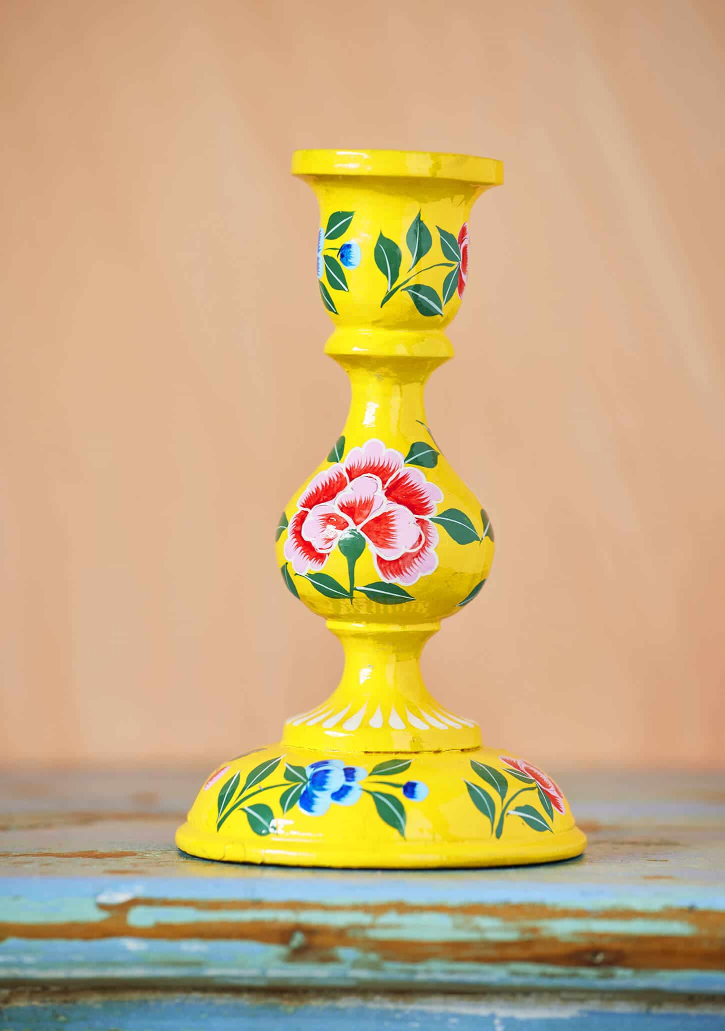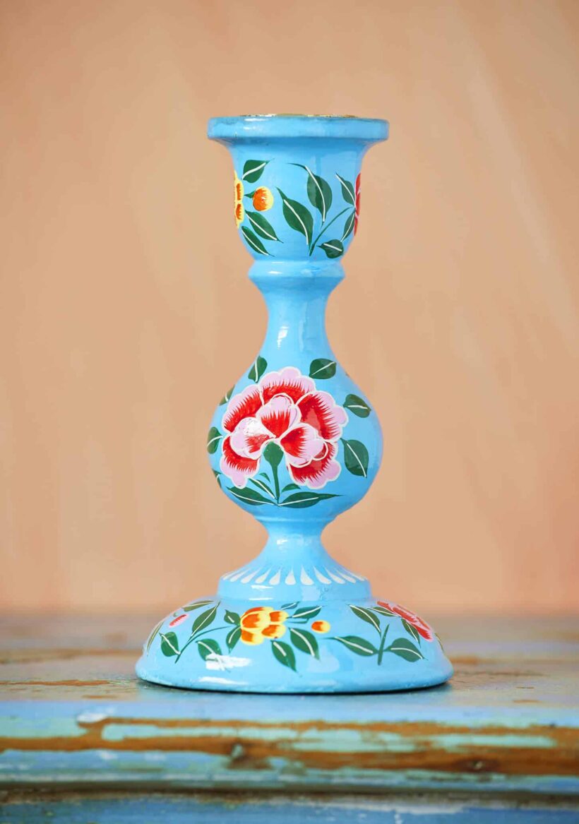 About the Artisans: This beautiful candlestick is hand crafted by skilled artisans in Kashmir, India. Our supplier is a World Fair Trade Organisation (WFTO) member, ensuring fair wages and ethical practices. They provide sustainable employment to over 500 artisans, many of whom work from home to care for their families. The artisans receive good wages, benefits, and access to education for their families. By purchasing this piece, you support a company that funds education for the children of their workers and promotes gender equality and non-discrimination. The business is committed to environmental sustainability, avoiding harmful chemicals, and using recycled paper in their packaging.