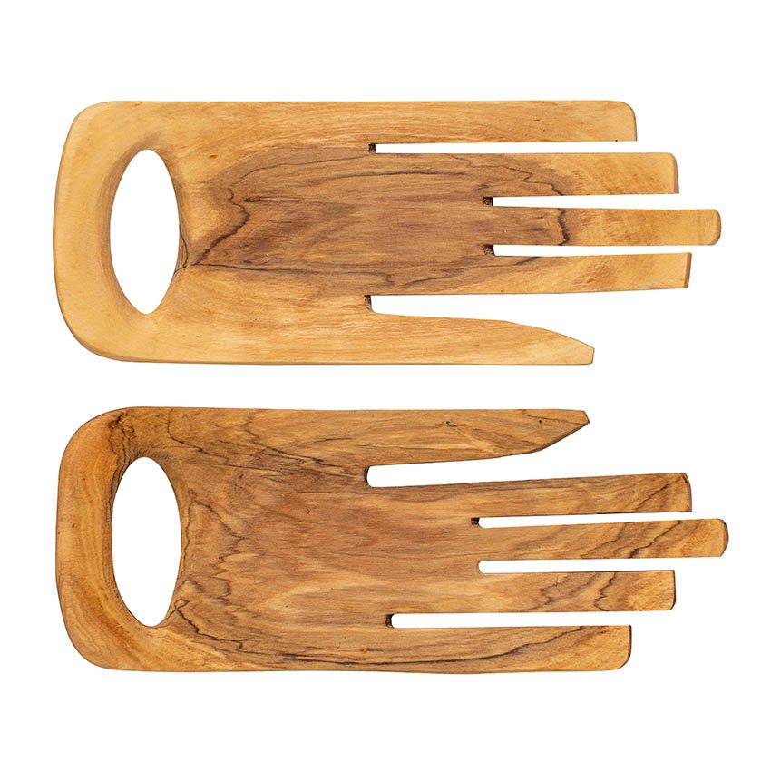 Beautifully detailed wooden hand shaped salad servers – Hand carved and ethically sourced from Kenya where it has been made from sustainably sourced Olive wood.