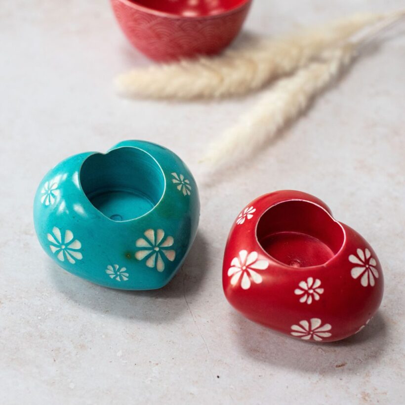 Beautiful and unique heart shaped tea light holders which have been ethically and sustainably made by a small group of artisan carvers in Kisii, Kenya – a region which is famous for it’s high quality soapstone.