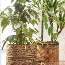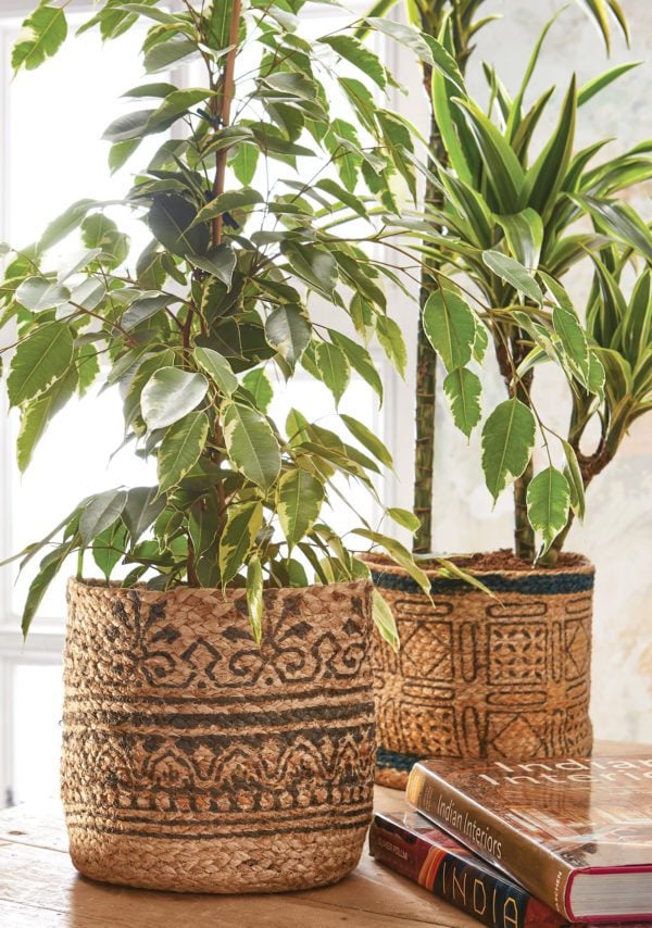 Skilfully hand braided from jute and block printed with gorgeous patterns, these planters use traditional skills to showcase your plants in a lovely organic way.