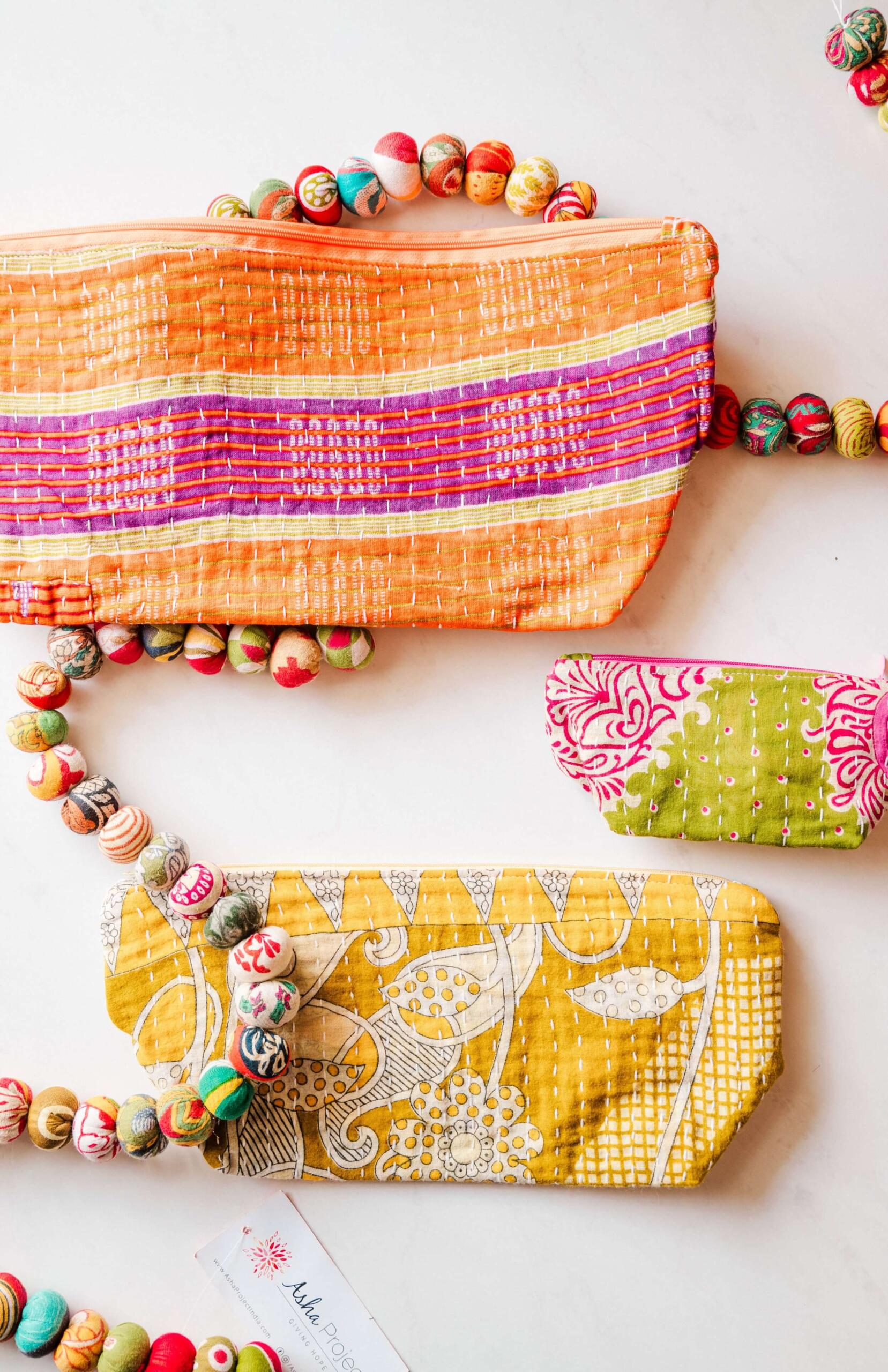 Every Kantha Cosmetic Bag goes through the hands of 3 women and creates 3 hours of work!