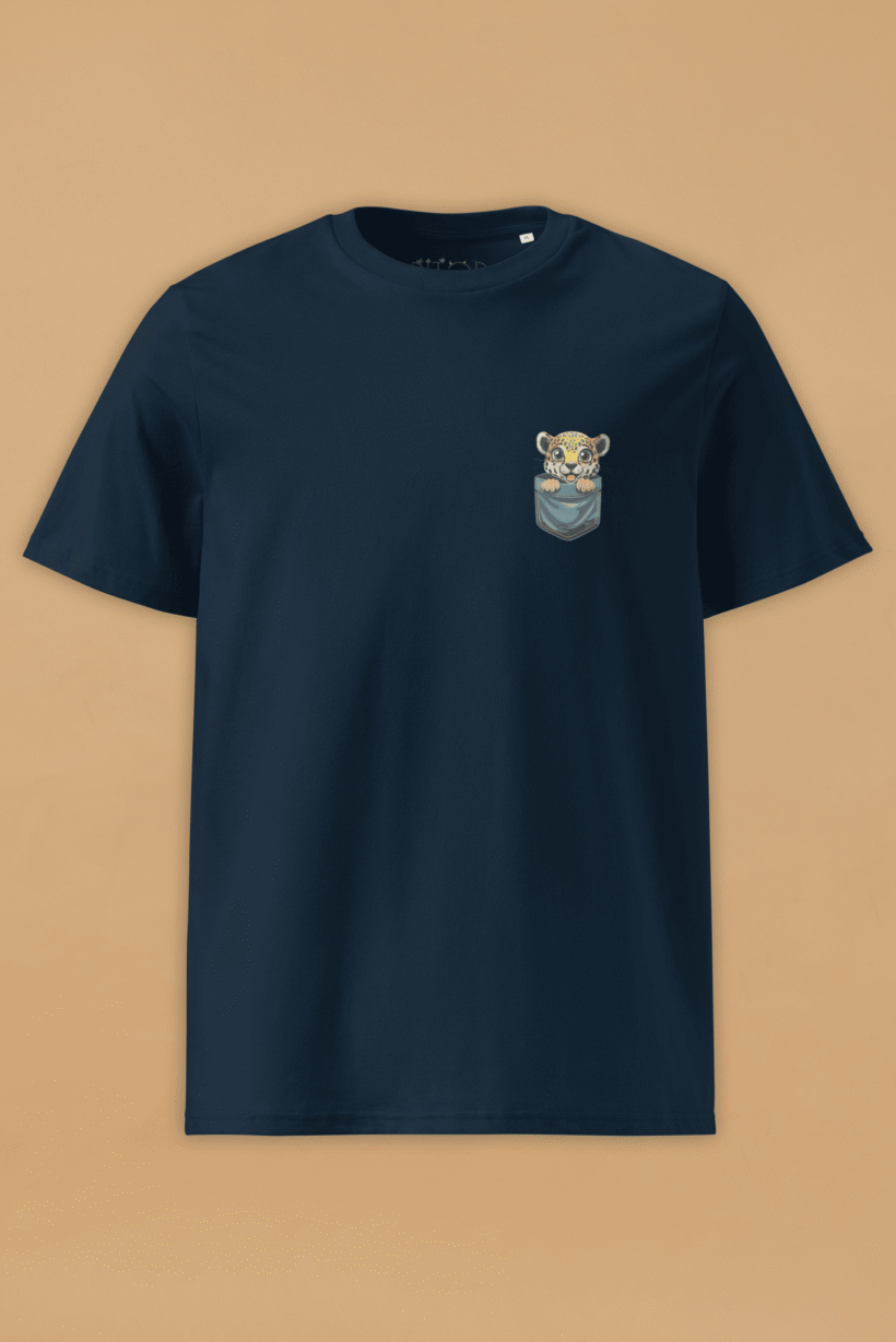 Silent, powerful, and elusive, the African leopard moves like a shadow through the dense rainforest, a symbol of both beauty and resilience. These magnificent creatures play a vital role in maintaining the delicate balance of their ecosystem, yet their habitat is disappearing at an alarming rate. Pitod’s Leopard T-Shirt is a tribute to these rainforest guardians, featuring an embroidered leopard peeking from a pocket on the left chest—a reminder of their presence and the urgent need to protect them.