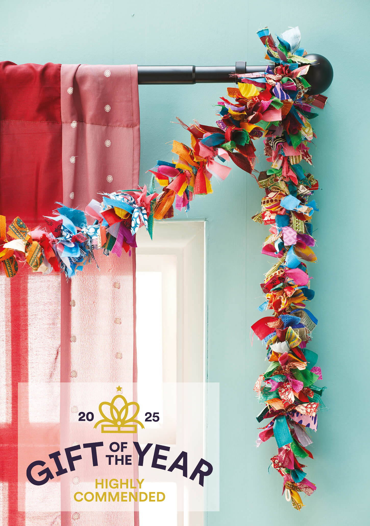 Bring colour and conscience to your celebrations with this vibrant recycled sari garland. Handcrafted from upcycled fabric offcuts, it transforms parties, festive décor, and home styling into something truly sustainable.