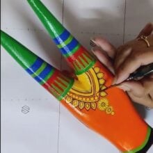 Nandi is the sacred bull of Hindu tradition, devoted guardian of Shiva and symbol of strength, loyalty and the patient heart. These hand carved mango wood Nandi Bull Wall Masks are painted by hand in Uttar Pradesh in vivid folk art colours, with intricate dotwork and floral motifs. A striking piece of Indian wall decor and a meaningful gift. Because every one is handmade, no two are exactly alike.