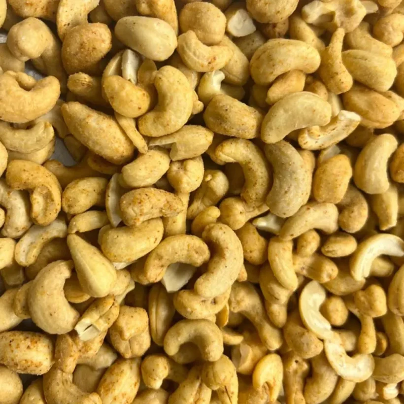 Color: Characteristic natural roasted color and spotted red color. Smell & Taste: Typical Cashew kernel taste & smell with salt and chilli flavor.