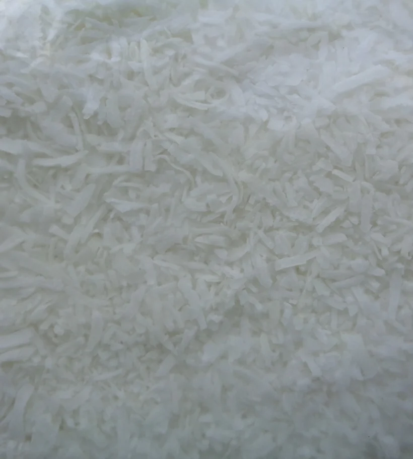 Organic fresh white coconut kernel is washed, shredded in to thread like pieces and dehydrated. Ingredient for confectionery, bakery and other food industries