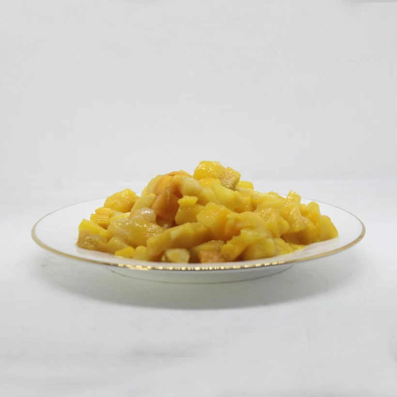 Organic fresh mango cubes are individually quick frozen.