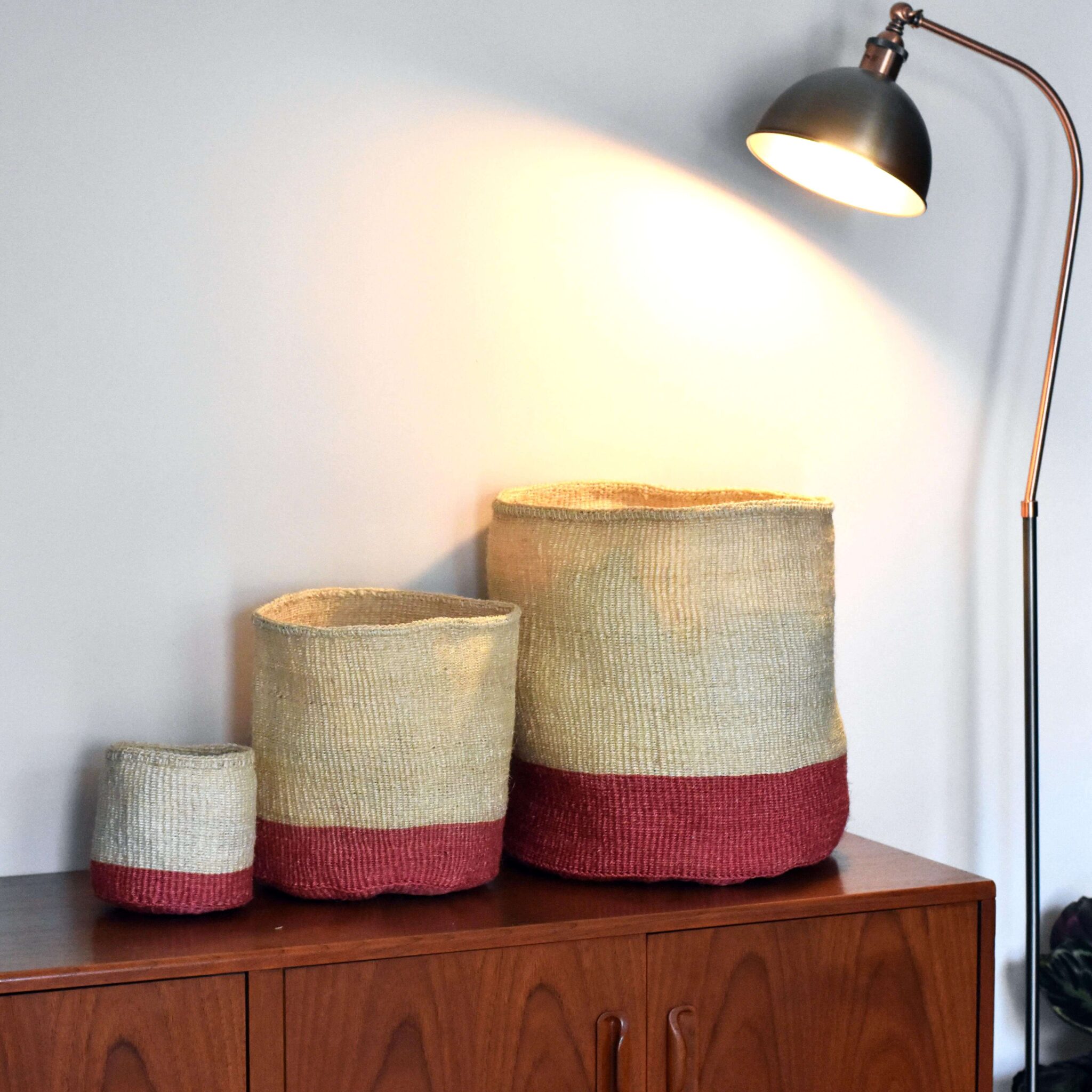 The baskets are hand woven from sustainably sourced Sisal