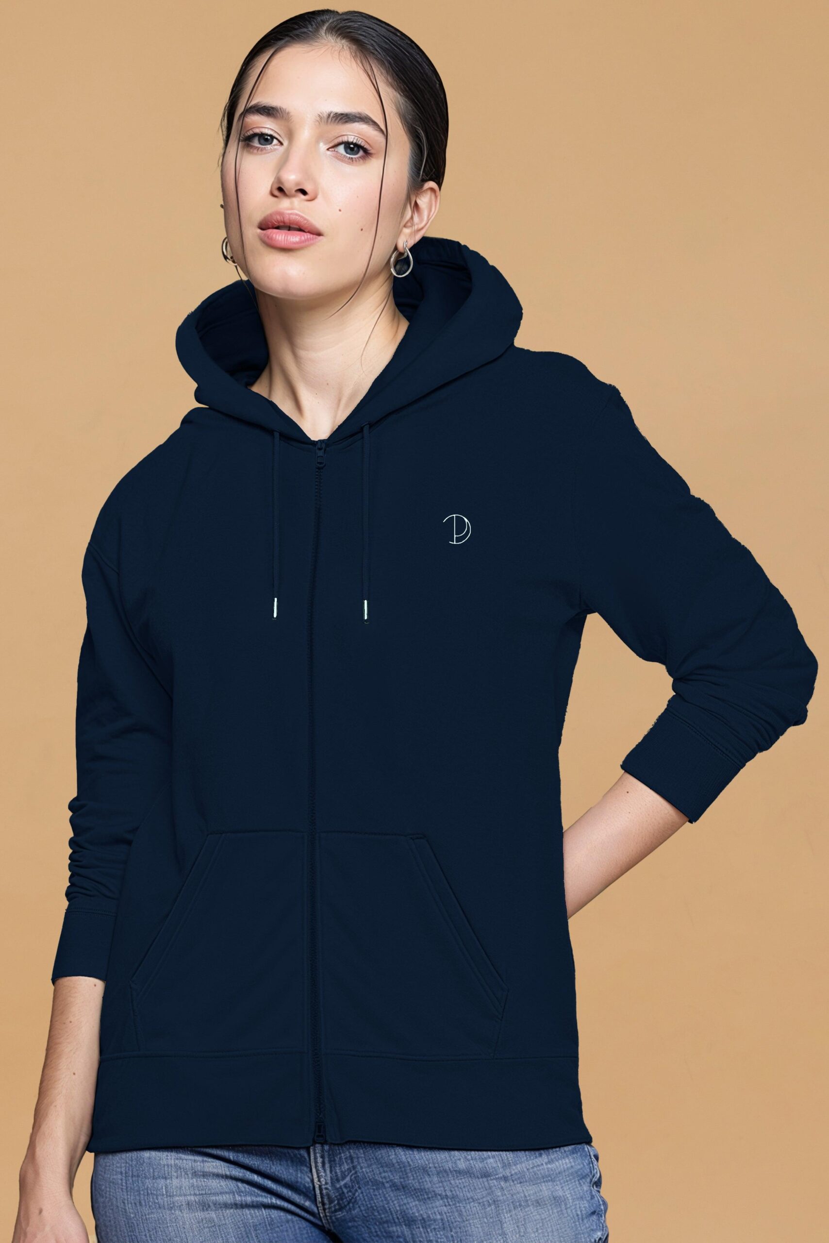 Introducing the Printed P Zip-Up Hoodie from Pitod, your new go-to for effortless style and comfort. Crafted from 100% Cotton – Brushed Organic Ring Spun Combed, this navy hoodie offers a luxurious feel while staying true to our commitment to sustainability. Featuring a double self-fabric lined hood and a self-fabric half moon at the back neck, this hoodie ensures maximum comfort and durability. The metal zipper and eyelets add a touch of sophistication, while the exposed metal zip at the center front provides easy wearability. Complete with a kangaroo pocket featuring wide double topstitching, this hoodie combines style and functionality seamlessly. Elevate your wardrobe with the Printed P Zip-Up Hoodie and experience the perfect blend of quality, style, and sustainability.