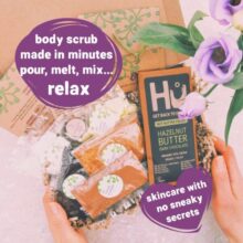 Packaging is completely plastic free! All packaging is home compostable – the ingredients sachets look like plastic but are amazing wood pulp film! An eco-friendly birthday gift that is kind to your skin and kind to the planet too!