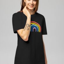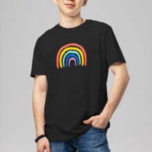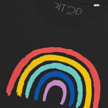 Celebrate love, equality and self-expression with Pitod’s Rainbow T-Shirt, a unisex black organic cotton t-shirt featuring a bold and vibrant rainbow design. Known as a universal symbol of hope and inclusivity, the rainbow has become especially powerful for the LGBTQ+ community and its allies, making this Pride t-shirt a meaningful piece to wear all year round.