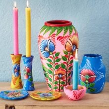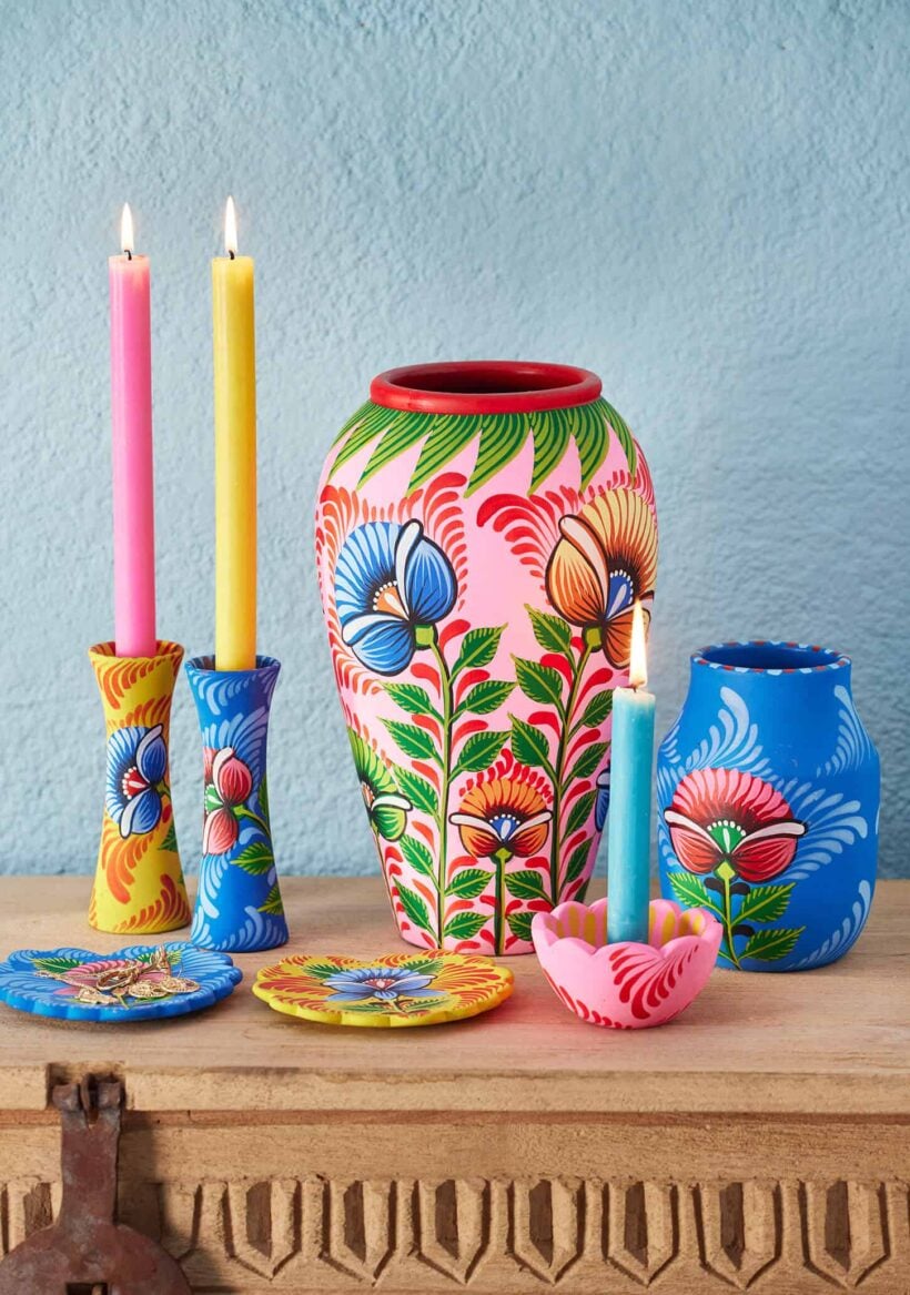 Create a warm, inviting atmosphere with this stunning tall colourful candle holder featuring the graceful Shapla (waterlily) design. Standing beautifully on its own or paired with other pieces, this artisan-crafted holder brings both light and cultural beauty to any room.