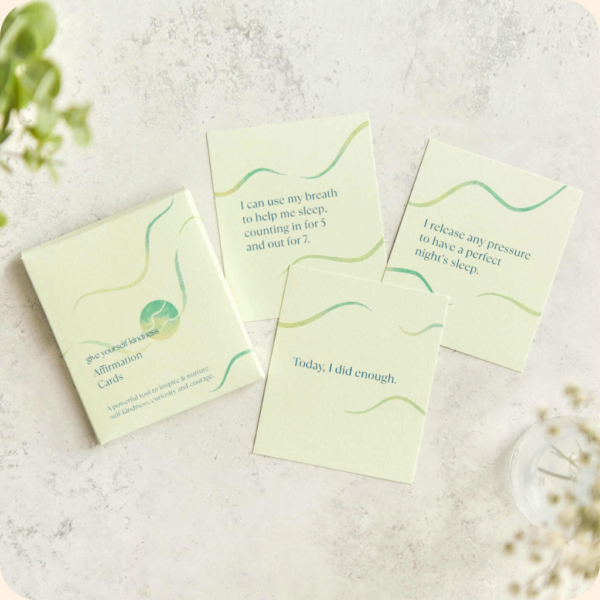 Discover the Give Yourself Kindness affirmation cards sleep edition and discover a tool to welcome restful sleep, support sleep anxiety and nurture self-compassion, kindness & courage.