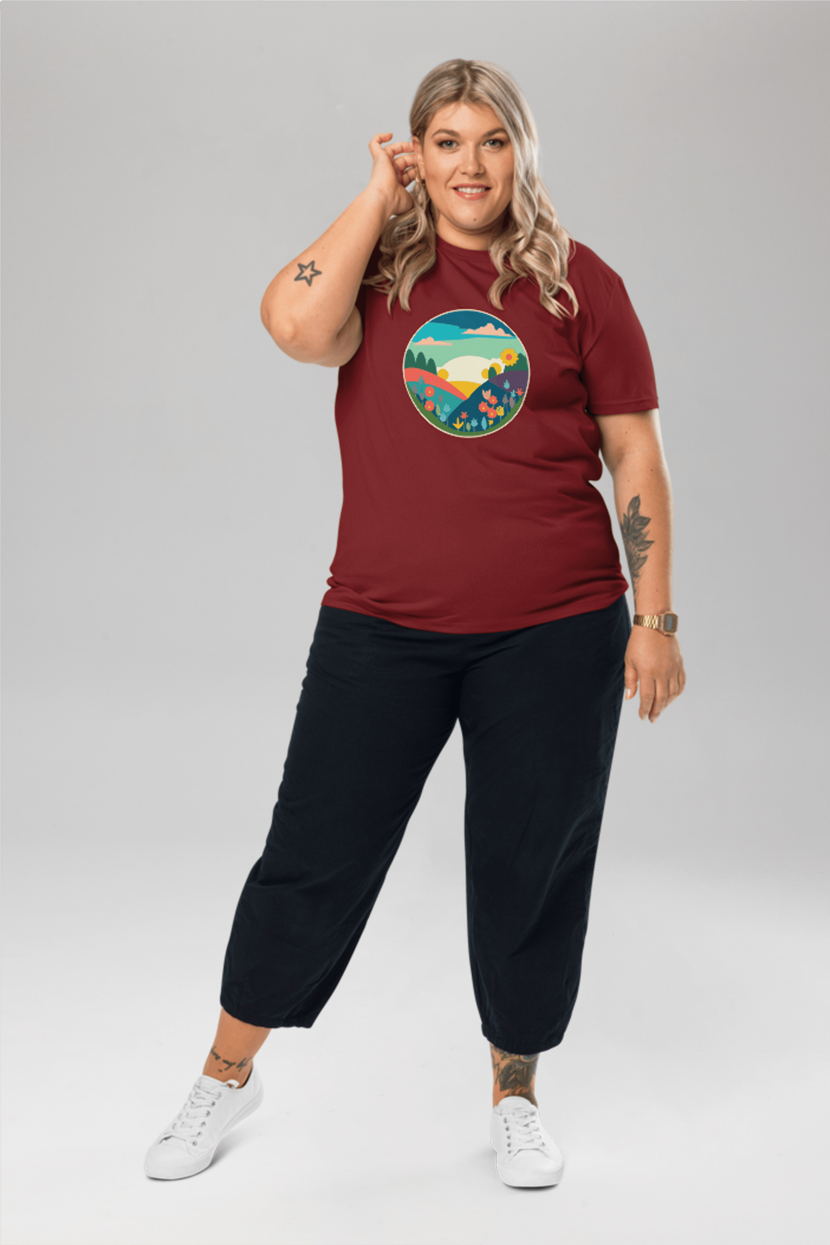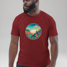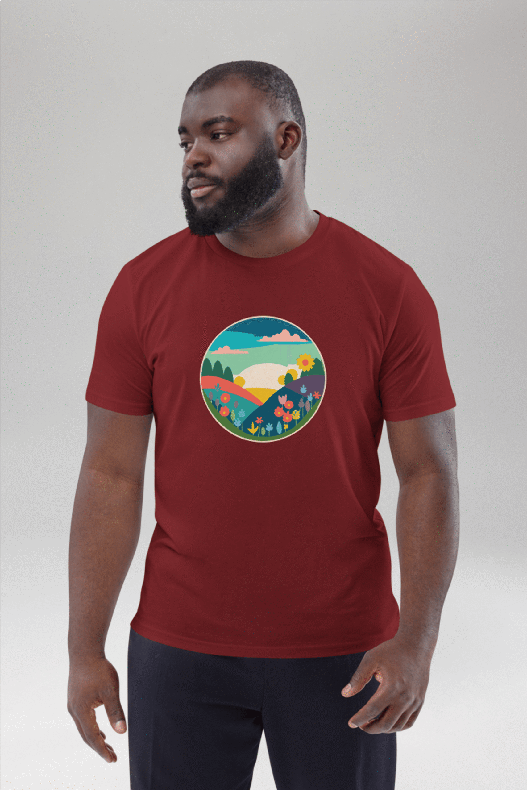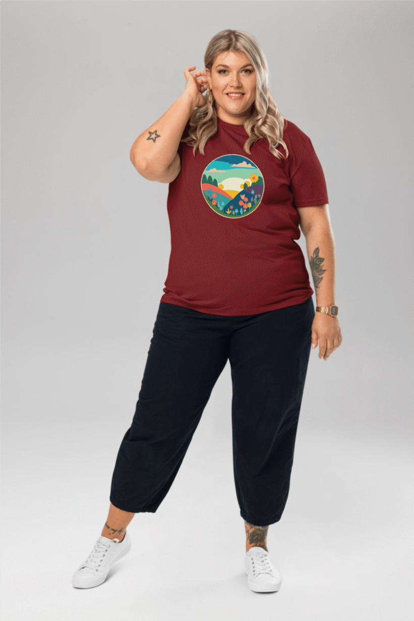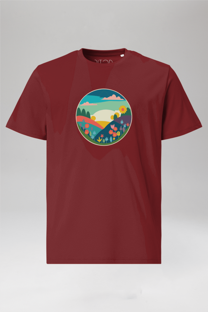 Step into a world of vibrant beauty with our Spring Landscape T-Shirt, a wearable canvas of colour and joy. Crafted from 100% organic ring-spun cotton, this unisex burgundy tee is a testament to our commitment to quality, comfort, and eco-friendliness. The captivating drawing of a colourful landscape, brimming with flowers, adds a touch of natural artistry to your wardrobe. Revel in the high-quality feel and sustainable essence of this shirt, featuring a single jersey weave for ultimate comfort and a medium fit for versatility. Embrace the beauty of nature and sustainable fashion—choose our Spring Landscape T-Shirt for a look that’s as vivid as your spirit.