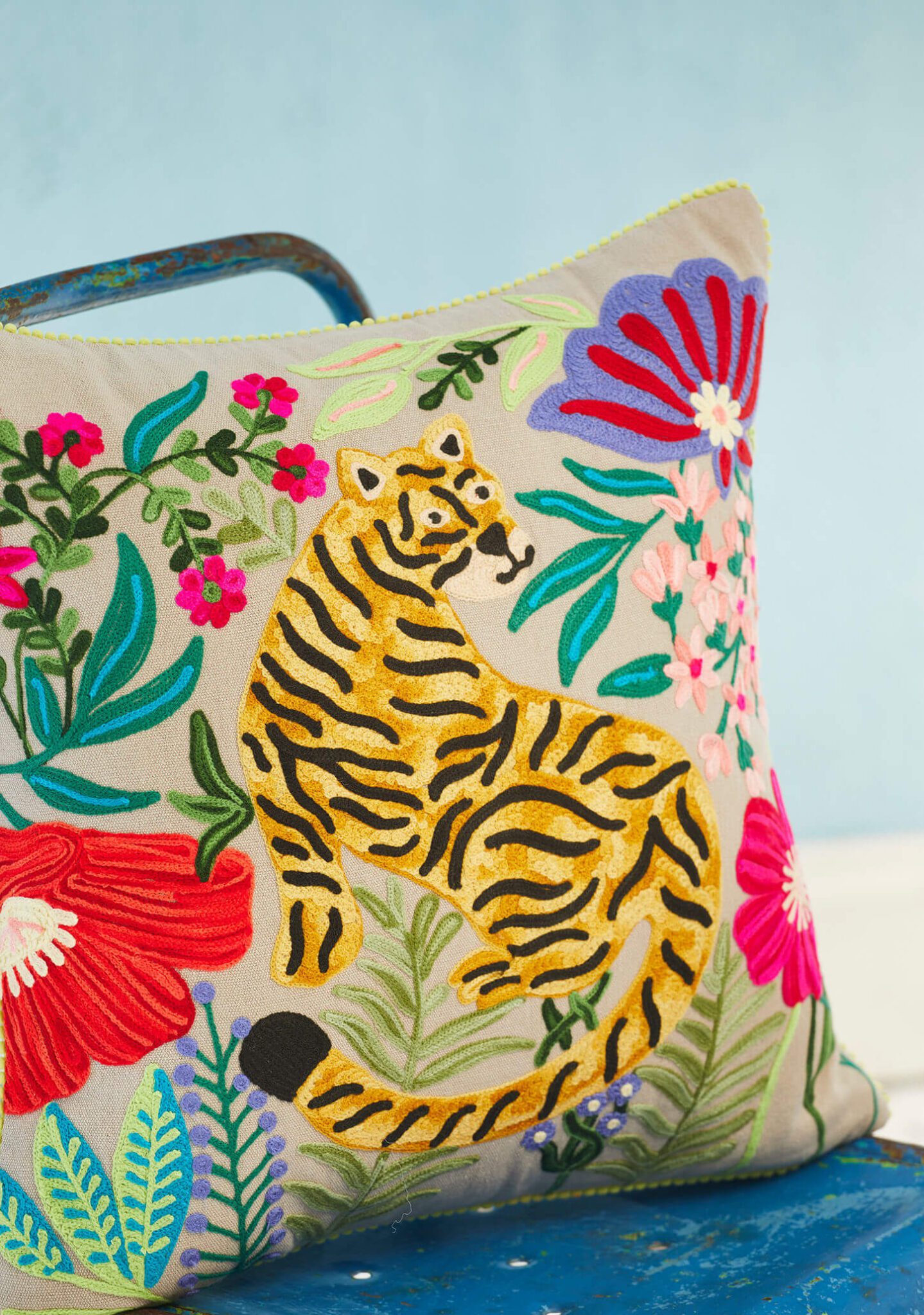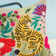 Ethical hand embroidered Tiger cushion covers