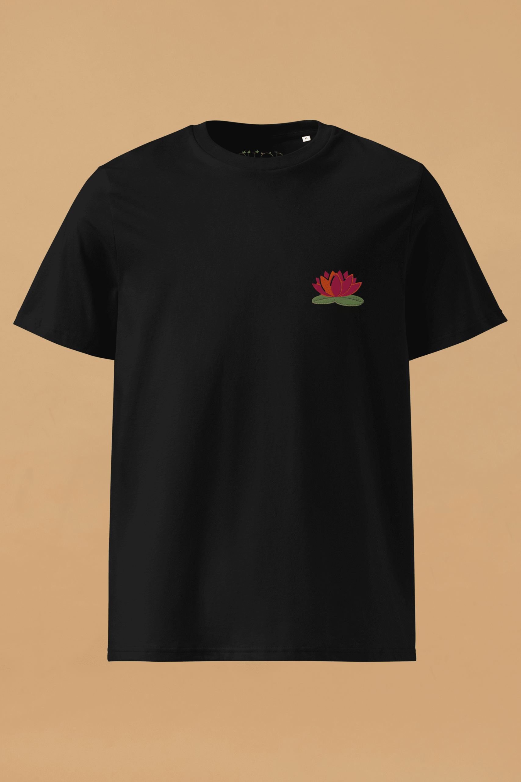 Embroidered on the left chest, the delicate water lily serves as a reminder that protecting these ecosystems means protecting our future. Designed in collaboration with Rainforest Foundation UK, this black t-shirt is part of a special collection that donates 10% of sales value to support rainforest conservation and Indigenous communities—the true guardians of the forest.