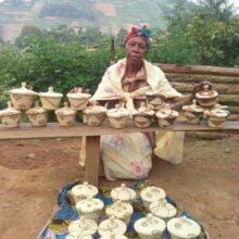 These craft items have been made by a small group of Batwa women who live on the borders of Bwindi Impenetrable National Park in South West Uganda. The Batwa people traditionally lived off the forest’s resources until it was made a conservation area in the early 90’s and they were forced to leave the forest and survive outside. These women use their knowledge of herbs to make the natural dyes for the grasses and the traditional weaving skills passed down from mother to daughter for generations.